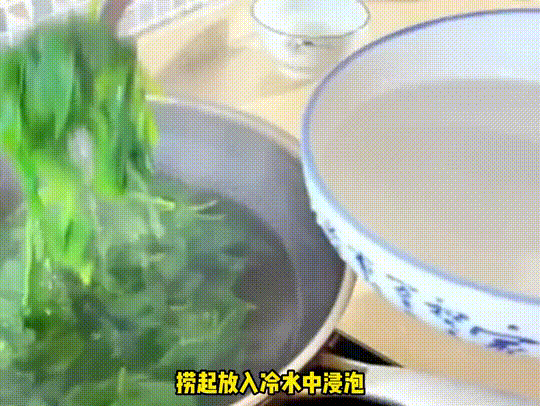 3. 捞起放入冷水中浸泡过凉,挤干水分。
