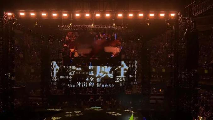 “唱到《当爱在靠近》时,我前面几排一位男生突然拿出一束手捧花,给身边的女朋友戴上白色头纱,然后单膝跪地拿出戒指求婚,旁边的观众都沸腾了。”