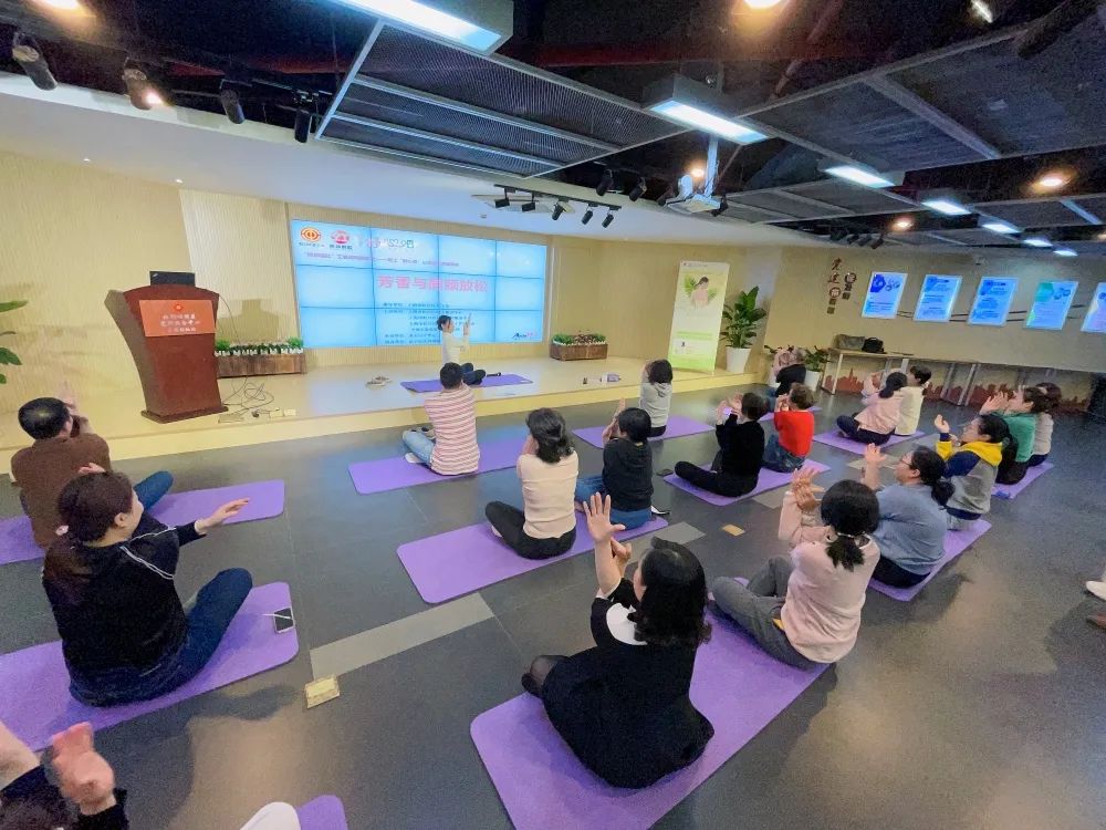 为了能更好地缓解园区白领在工作生活中的压力,唤醒白领活力,用愉悦积极的心情面对生活,此次活动特意请来了专业老师进行授课。现场,大家在老师的指导下,一起进行全身肌肉拉伸,并对自身肩颈肌肉不适程度进行评估。