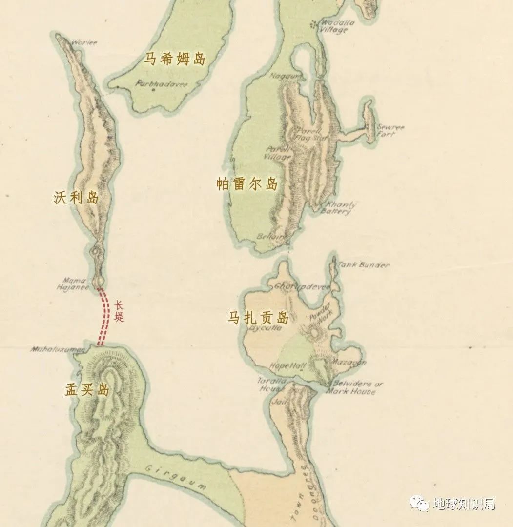 等他派人按图索骥找到这地方之后才发现高兴得太早了。这原来是阿拉伯海东岸,南亚次大陆西海岸的一串不名一文的小岛,一共有七个,分别叫科拉巴岛(Colaba)、老妇人岛(Old Woman's Island,又叫小科拉巴)、孟买岛(Bombay),马扎贡岛(Mazagaon),帕雷尔岛(Parel),马希姆岛(Mahim)和沃利岛(Worli)。