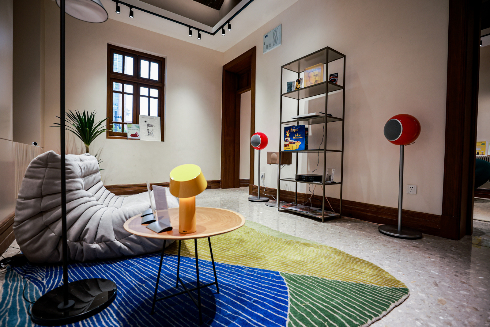 踏上张园W17 A幢的木质楼梯,一段黑胶唱片音乐缓缓流淌。如果不是店主介绍,游客可能不会留意到,这是一家欧洲精选高端音响、灯饰、家具品牌联合快闪。