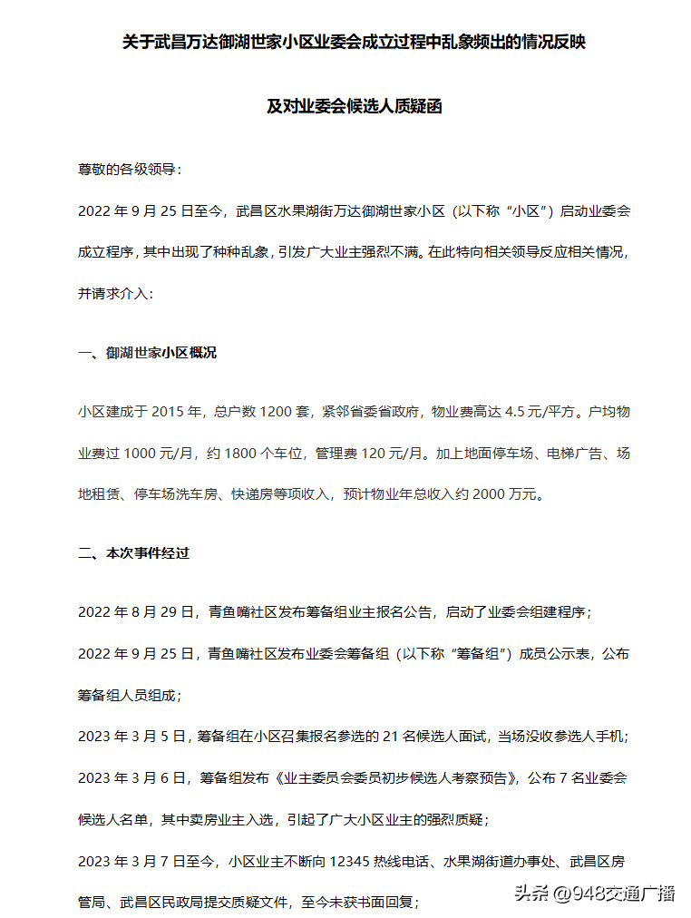 武汉一小区业委会成立过程被指暗箱操作,众多业主要求重选