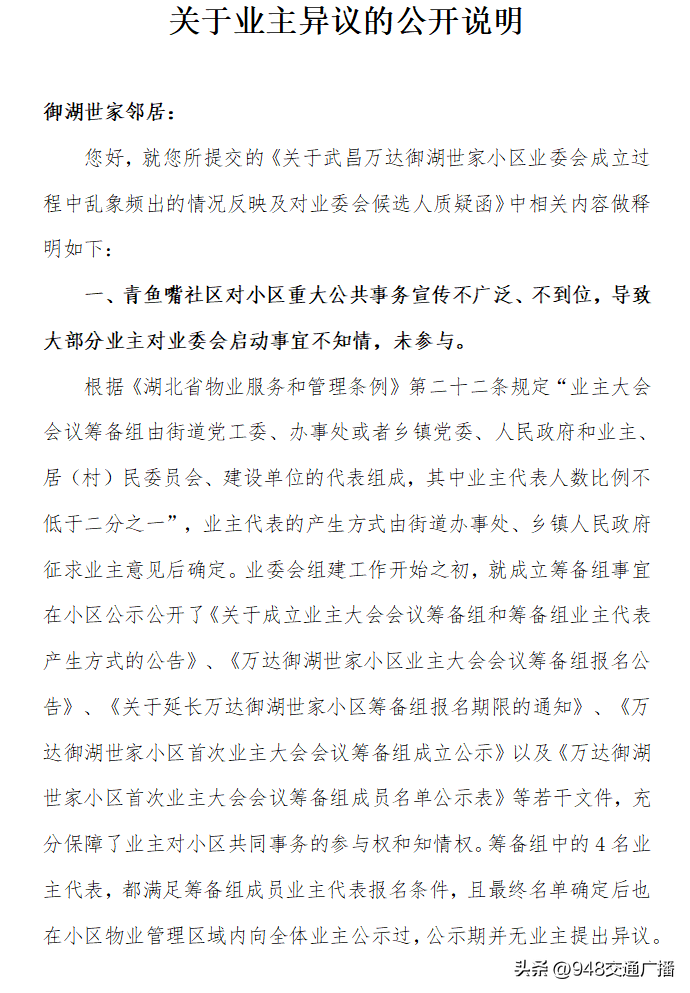 对此,万达御湖世家所属水果湖街青鱼嘴社区党委书记兼居委会主任、筹备组副组长邹烈给出了答复。他说,在业主质疑的环节,均设有相关标准。至于部分业主所持的反对意见,大部分属于被误导。