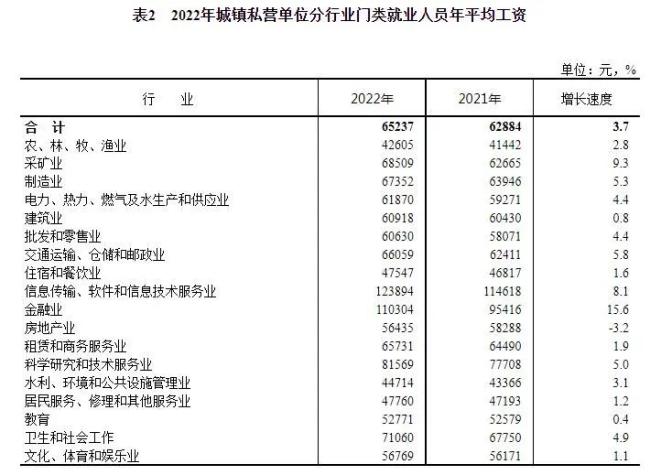 2022年城镇私营单位分行业门类就业人员年平均工资 图源:国家统计局网站