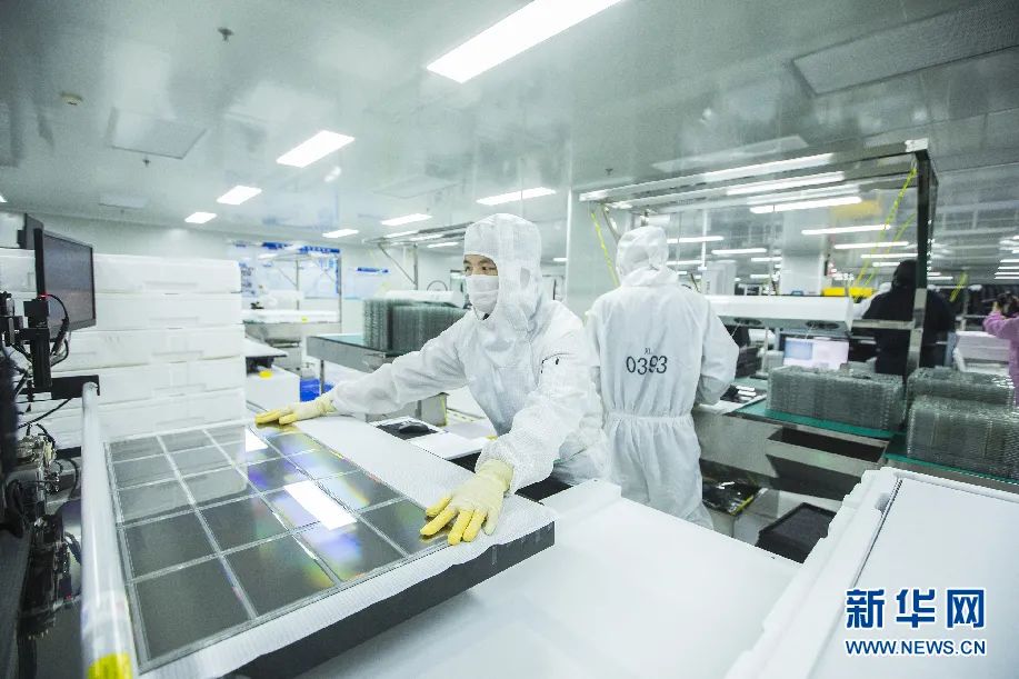 湖北联新显示科技有限公司无尘车间内,工人正赶制订单。图源:新华网