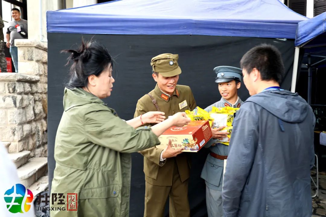 “人家买我们的产品,免费给我们宣传,以实际行动支持咱乡村的产业振兴。咱也得用实实在在的行动回报人家!”“实在井陉”区域品牌产品磨盘山割髭岭酸辣粉儿生产厂家负责人毕占强说。“实在井陉”区域品牌产品生产厂家的其他一些负责人也有同样的想法。响应“实在井陉”区域品牌产品部分生产商的呼吁,5月10日下午,井陉县委宣传部带着磨盘山割髭岭酸辣粉儿、天长缸炉烧饼、欣畅煎饼、甲小线米线及厂家负责人,去慰问正在井陉矿区段家楼景区内拍摄的《浴血荣光》剧组。