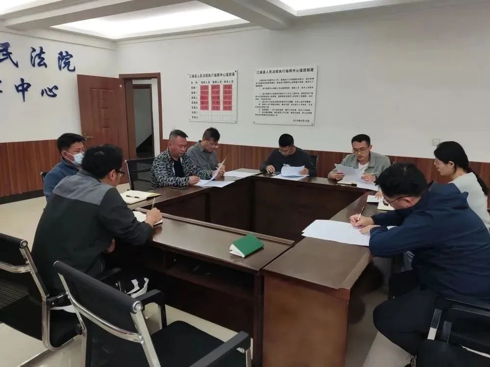 江城法院通过逐案分析研判,梳理问题,集思广益,因案施策,拟定结案方式、推进步骤和结案时间。做到每周一督办,避免案件超期问题出现。通过每周例会机制,每人对上周执行工作进行小结,对下周工作作出计划。建立案件实质性合议机制,对疑难复杂案件,组织研究讨论,以案促学、学以致用。
