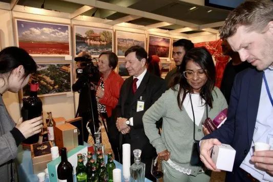 在维也纳联合国中文日活动上,联合国城一楼圆形大厅里,同时展出了“字、景、史、画”汉字展,“文源海岱”文化主题展,“好客山东 好品山东”主题展和“翰墨齐鲁”书画展四大板块,参观者能品尝到青岛啤酒、张裕红酒、花冠白酒等齐鲁美酒,还能“沉浸式”体验汉字(汉画)拓片、剪纸等技艺;开幕式演出上,则有《沂蒙山小调》等传统民乐,可谓集齐了好看、好吃、好用、好玩各种“硬货”。