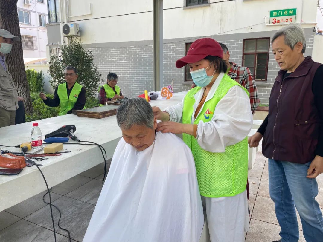口袋公园启动仪式当天,不少穿着绿马甲的志愿者,在西门辰光新时代文明实践点摆起了小摊,为居民提供免费理发、法律咨询、日常修理、防诈骗宣传等服务。这些志愿服务将一直延续到之后的社区活动中,而这些志愿者也将在公园后续管护中起到重要作用。