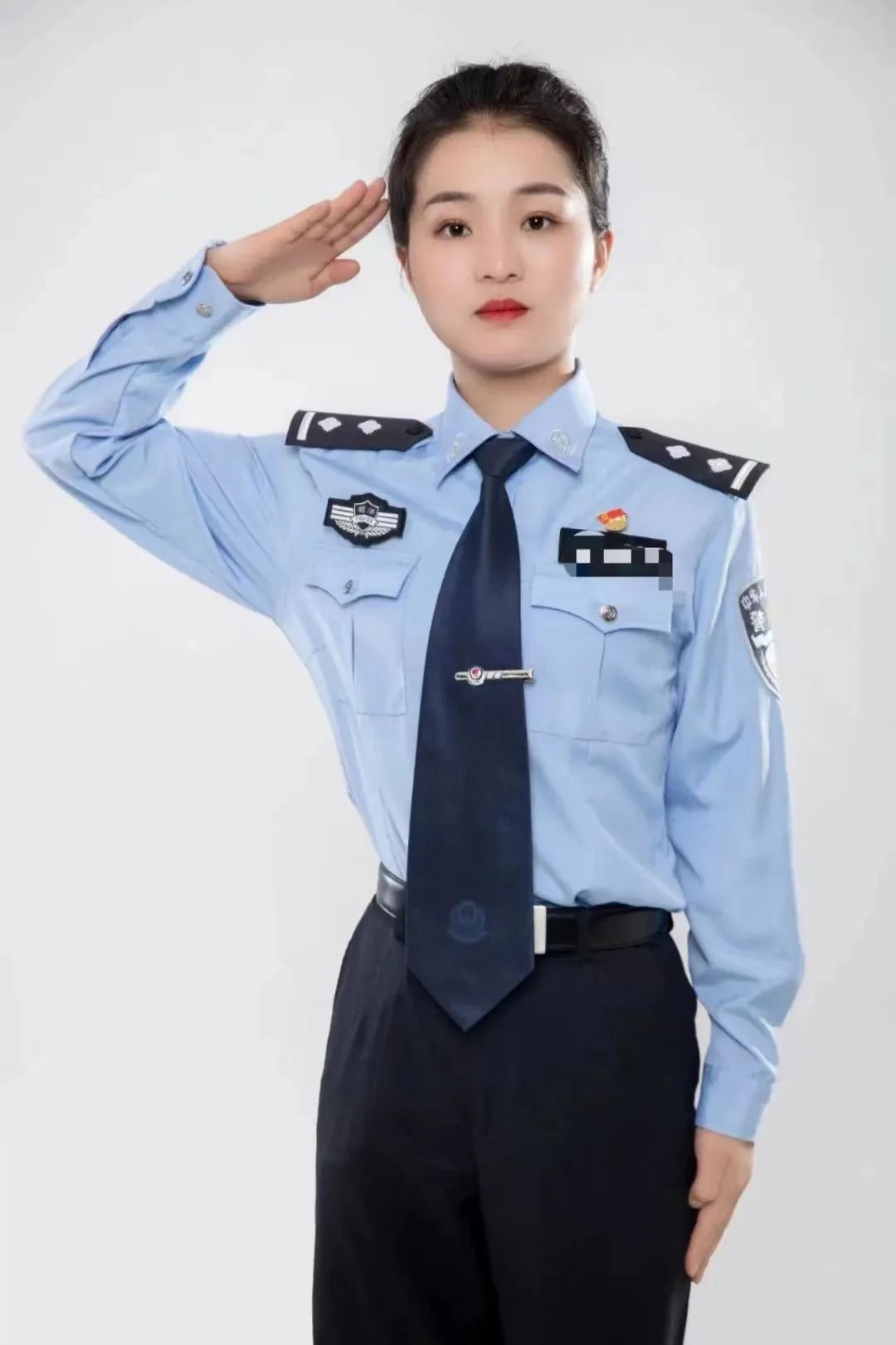穿上藏蓝警服,