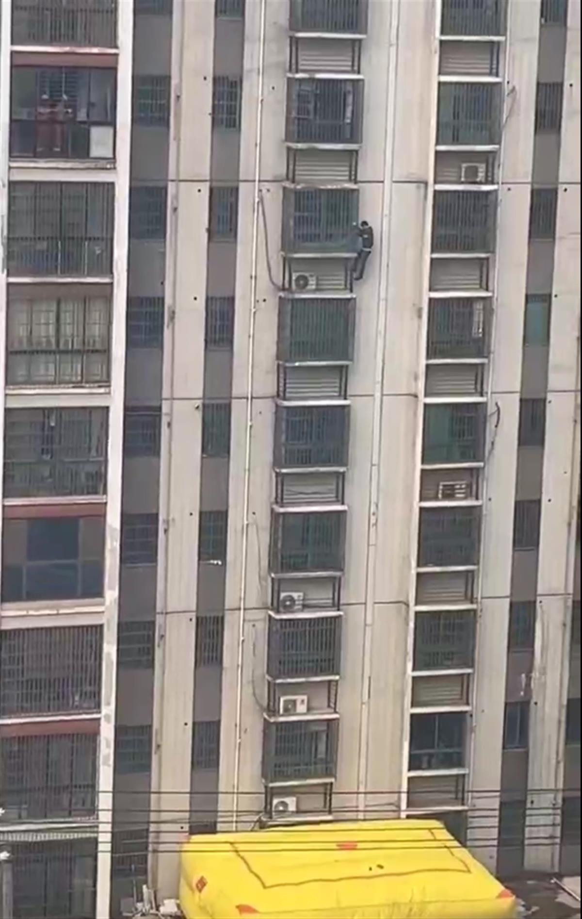湖南一男子挂在10楼外墙防盗窗上,爬到3楼后安全获救