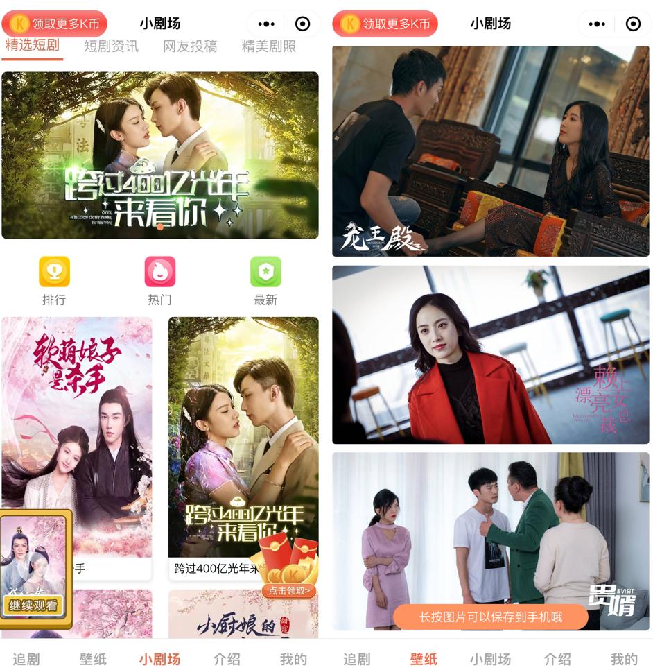 小程序中流行 100 集短剧,每集约 1-2 分钟。