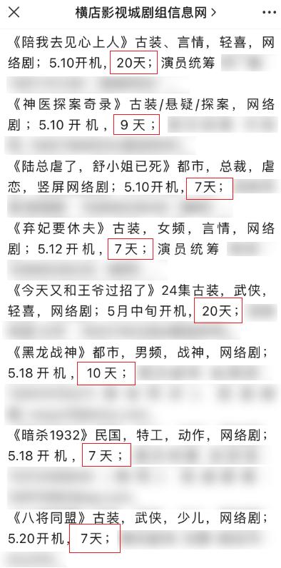 为了提升效率,短剧公司批量采买剧本后,会找多个承制单位,差评君也刷了下横店剧组信息网,发现很多在拍的都是短剧。