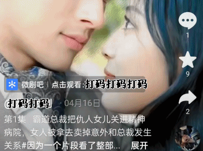 短剧,又被称为网络微短剧,一集就几分钟,历史可以追溯到《 报告老板 》和《 万万没想到 》,只不过,如今它正以全新的内容形式出现在人们面前。注意看,这是一部讲 “ 爱情 ” 的短剧,走的是经久不衰的霸道总裁虐恋路线。