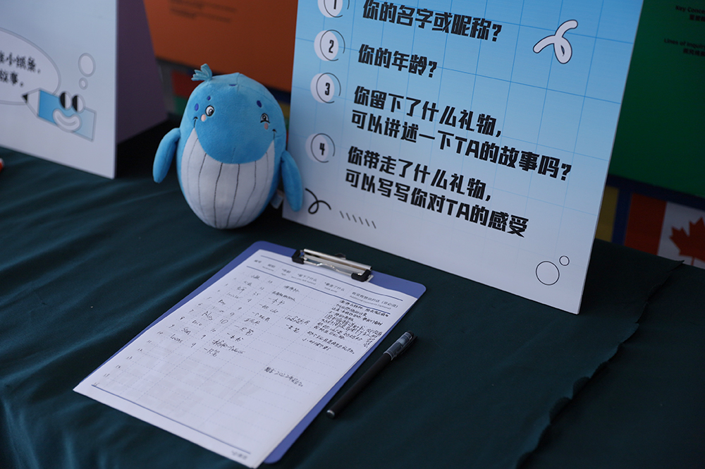 值得注意的是,展览现场还设置了采样板和信箱,采集学生们为气候变化采取行动的意愿,及对未来的畅想。此外,展览还设置了旧物循环架,在学生间收集和流通旧物,以及关于旧物的故事——每件旧物需要附上一份简介和寄语,介绍它的独特身世和承载的独特情感。参与活动的同学有机会获得科普书籍和再生材料制作的小礼品,它们由国际知名非营利环境保护机构野生救援WildAid提供。