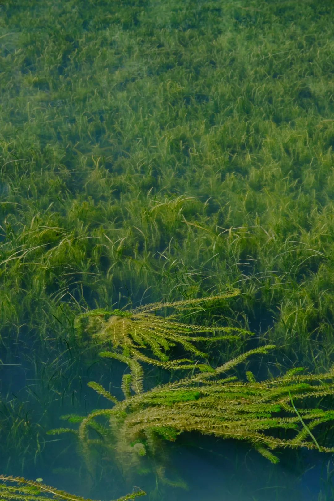 湖底丰盛的水草随波摇曳,