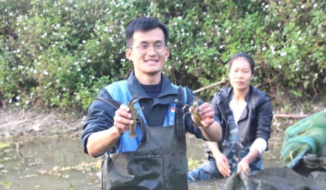 “产业振兴是乡村振兴的关键和基础,必须不断整合现有资源优势,团结返乡人才、经济能人,用好用活政策,做大做强产业。”苏文积说。在新贵村龙虾养殖基地里,大伙正忙着抓虾、分虾、称重。“今年是我们养殖小龙虾的第3年,20亩的基地亩产可以达到800斤,今年产值估计有40万元。”合作社负责人余小芬说。在苏文积的引导下,余小芬成立了益嘉小龙虾养殖专业合作社。2022年,村委拿出15万元村集体经济资金入股合作社,通过“村委+合作社”共同发展澳洲淡水龙虾养殖项目,村委每年获得1.2万元村集体经济收入。2022年6月,余小芬被评为“武宣县最美返乡致富带头人”。周期短、产值高、收益好,苏文积看到产业发展的希望。他积极发动家中有较大庭院的农户,充分利用庭院养殖澳洲龙虾,村委与合作社采用“合作社+养殖基地+庭院”的发展模式,动员脱贫户和群众加入合作社,学习澳洲淡水龙虾养殖,实行“合作社培训发苗、群众家门口饲养、老板上门回收”的合作模式,推动新贵村“庭院经济”发展,促进村民增收致富。