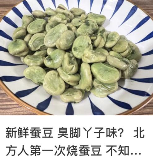 其实鲜嫩蚕豆是没有臭味的,而放老的蚕豆,不光外皮会变黑,“臭脚丫子味”也会日益增厚。但据说不爱吃的人就觉得它臭……