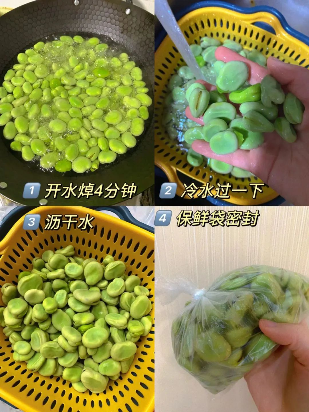 开水焯4分钟,冷水过一下沥干水分,保鲜袋密封。(这样后续口感更软糯)