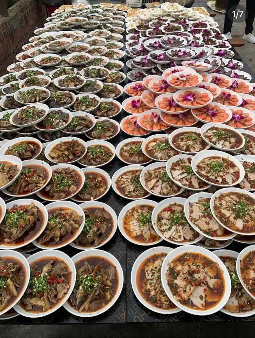 重庆永川乡下的一条龙流水席 图源:喜欢吃好吃的阿木曾在云南某个小镇路过一个刚办完大席的酒店。“他们会把没动过的大席菜打包,以极低的价格卖给路人,既避免了浪费也分享了喜悦。”看过太多只动了一半,剩下的就倒入泔水桶里的大席,阿木觉得自己的价值观简直得到了某种重塑。