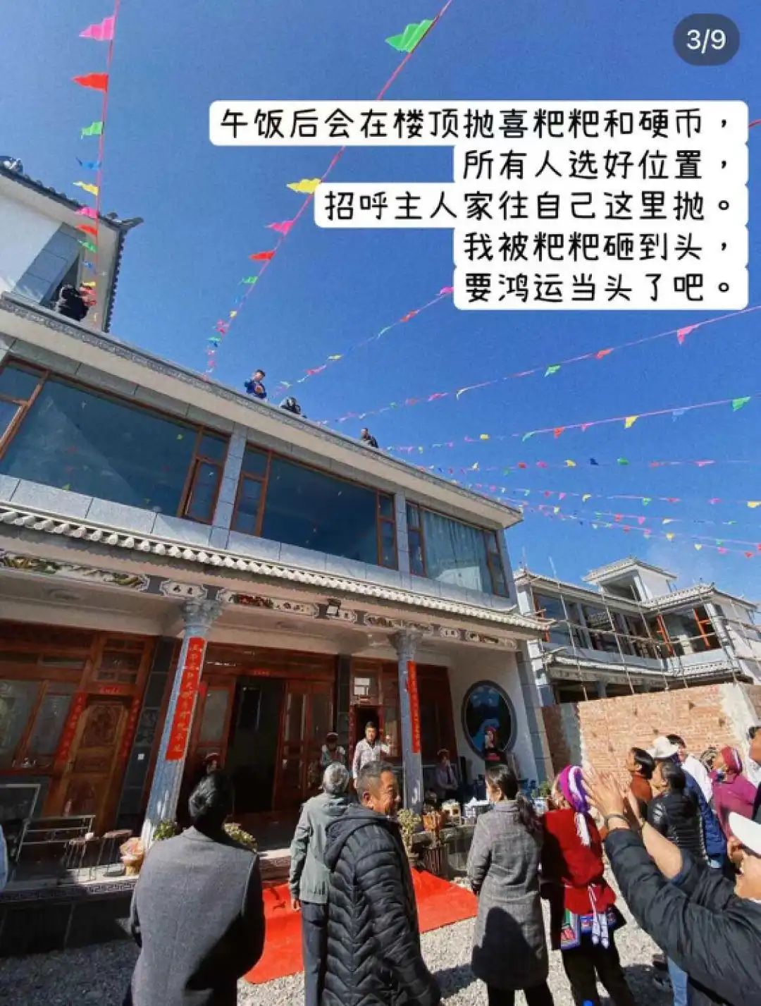 图源:三只西瓜(旅行ing)在小媛参加的大理流水席上,还有扔喜粑粑和硬币的习俗。“我没经验,被粑粑砸中了脸。在当地,这就是鸿运当头的吉祥寓意。”