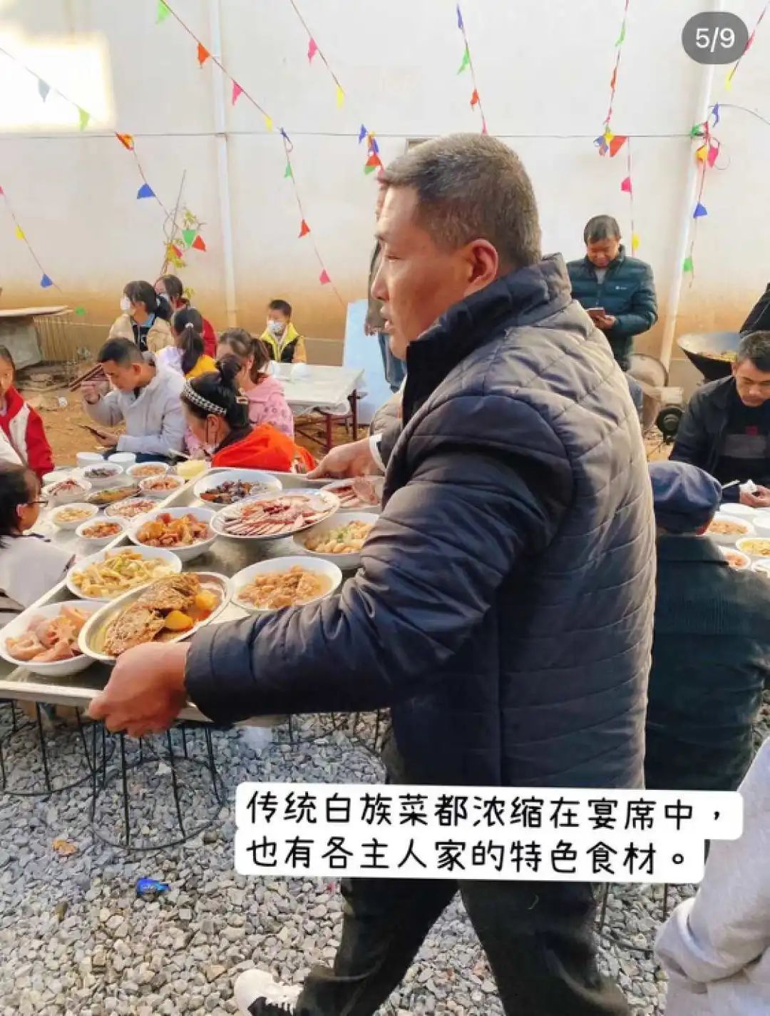 吃上几口大席菜你便会感叹,网红餐厅里的菜精致是精致,但远不如大席菜这般有锅气。“大席,才是舌尖上的中国。”要知道,一位走街串巷的村厨,或许比米其林大厨更懂你对“正宗”的需求。旅居大理的小媛,今年就碰上了一次白族人的乔迁宴,“大席上是大理特色菜品,酸辣鱼、炸乳扇,千张肉、米糕,还有最有民俗味的‘白族八大碗’。”