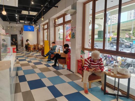 当时店里所有的椅子都坐着爷叔阿姨,一派老龄化城市的样貌。