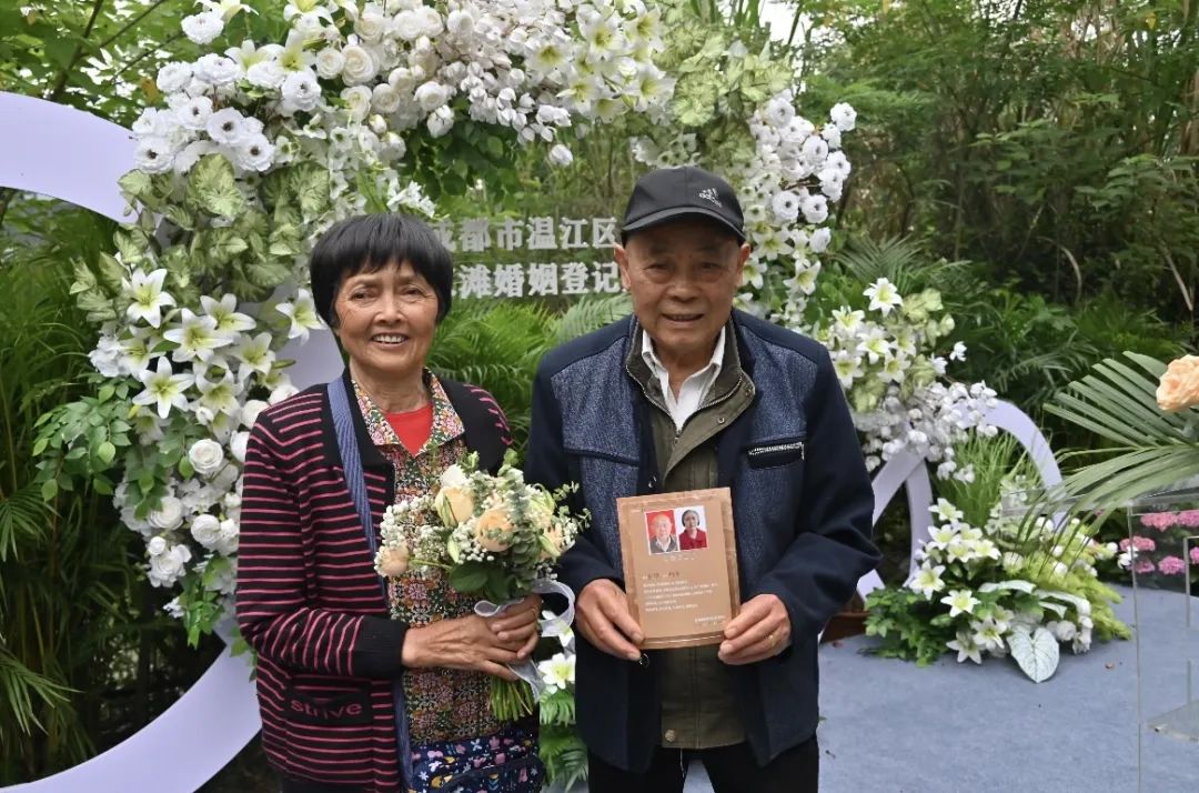▲雷洪昌、尹世英夫妻据温江区民政局相关负责人介绍,温江区作为全省婚俗改革实验区,为优化婚姻登记办理流程,今年创新首次推出“纪念证、铜婚证、银婚证、金婚证、钻石婚证”五证办证服务。只要居民的婚龄符合条件,都可以向当地民政局申领。启动仪式上,20对纪念婚夫妇领取了成都市首批纪念婚证。