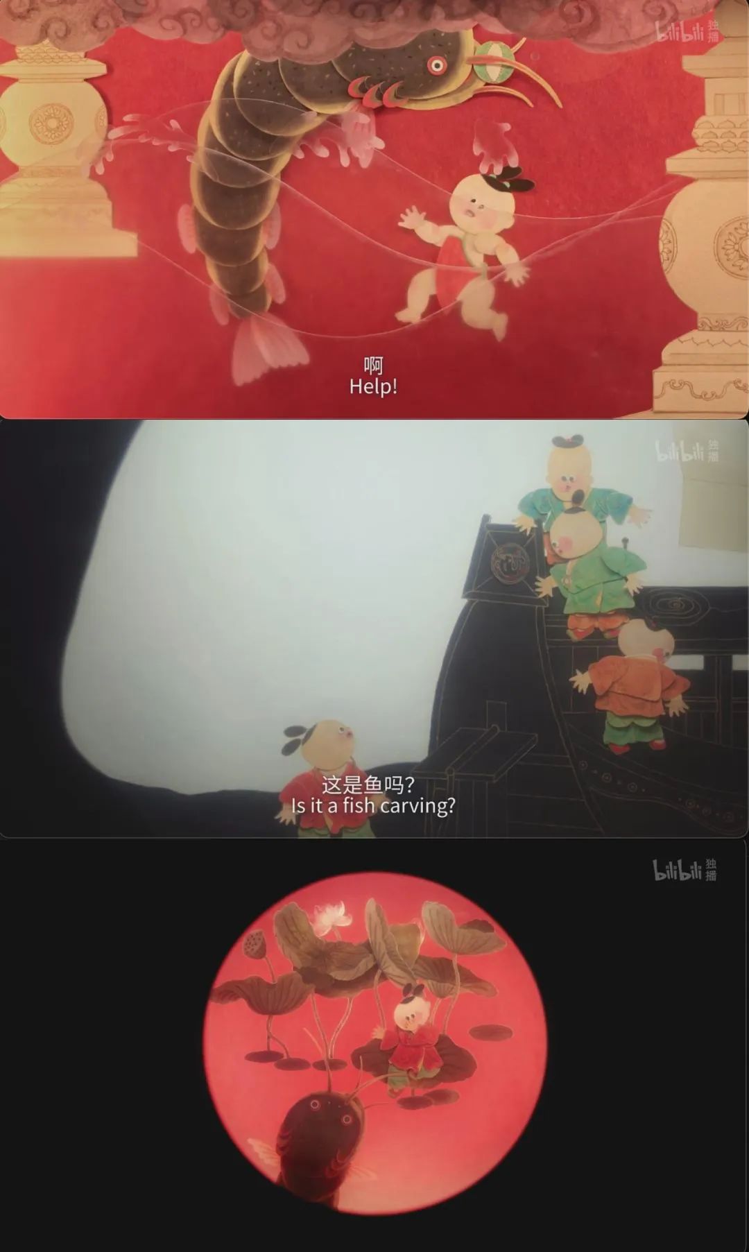 他在水中玩球时遇到一只“鲶鱼怪”,这个鲶鱼怪时时入梦,让小满倍感惊惧。后来,小满和朋友们在院子中发现一口枯井,在年幼的小满眼中,井下有大海船,还有许多兵器,热闹非凡,小满还发现船头的一块瓦当上绘有彩色的鲇鱼,小伙伴们都惊呼其漂亮可爱,被朋友们鼓励,梦中再见到鲇鱼时,小满也觉得它变得善良可爱起来。