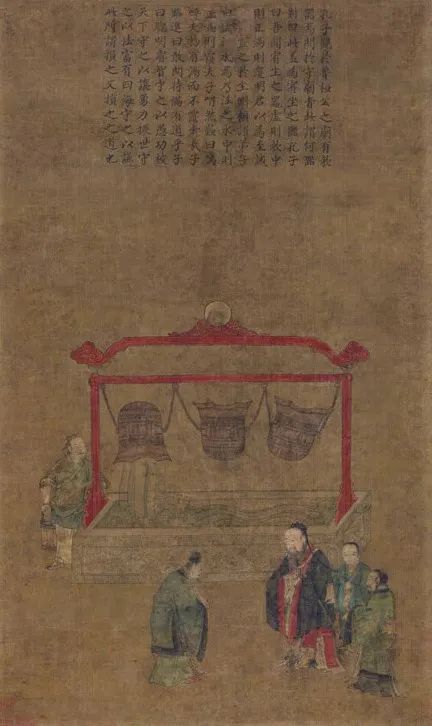 孔子观欹器图1953年,在西安东郊发现距今约6000年左右的半坡遗址中也出土一种尖底、口小的陶器水罐,它同样只有盛放一定量的水才可以被端正地提起来,它也被证明是欹器的来源。