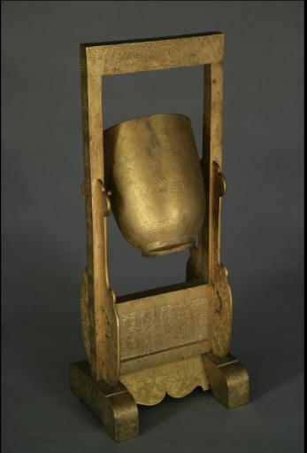 半坡文化尖底瓶——欹器的来源故宫博物院藏一件铜镀金戒盈持满。清宫造办处记载,它是清末光绪、宣统年间帝王寝宫中的日常摆设,大概年轻的皇帝们曾有都怀有一种励精图治的决心,以其来自警,时刻勿忘持满纳谏。