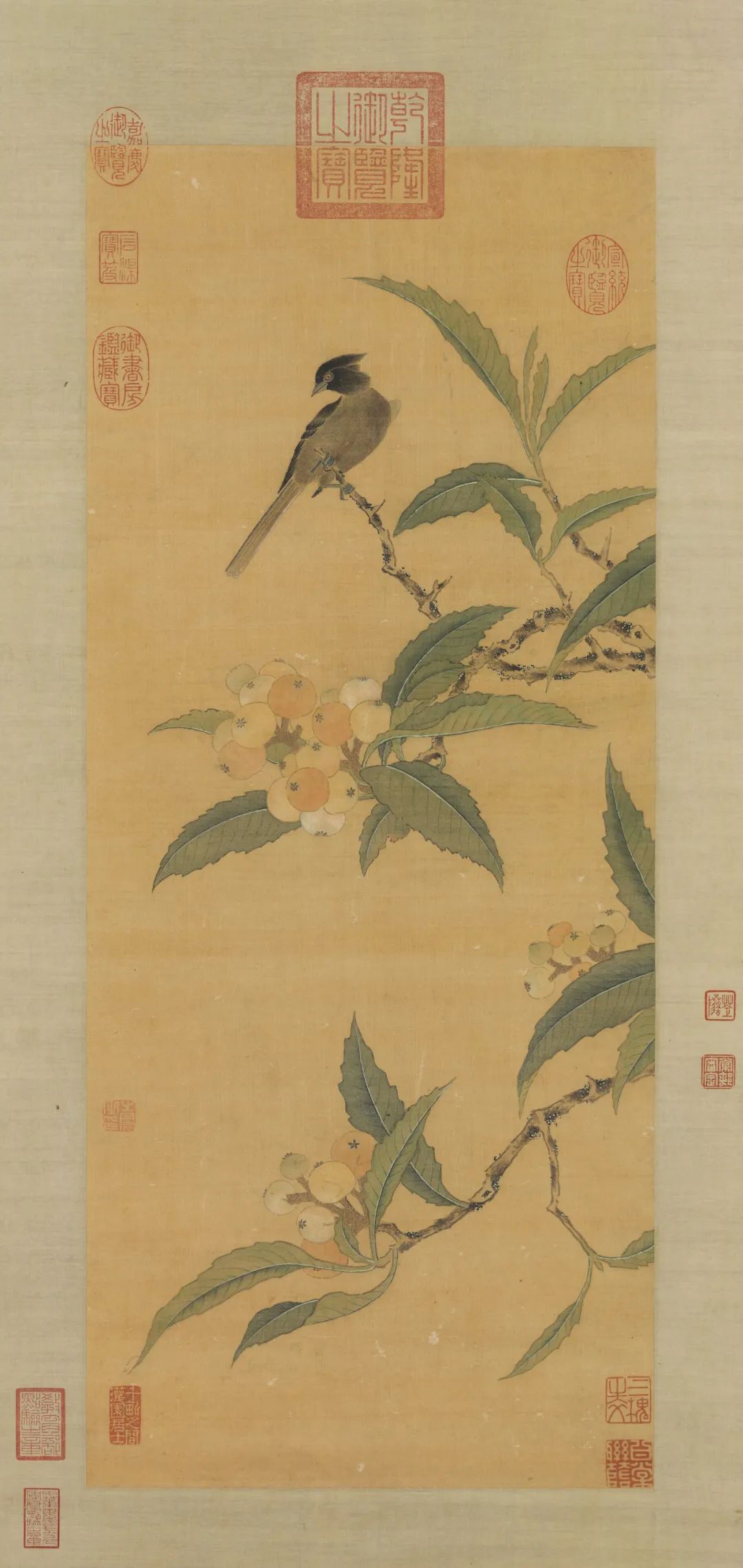 明 佚名 《麻雀果枝图页》枇杷杨梅之外,另一种更为珍贵和甜美的水果——荔枝也上市了。