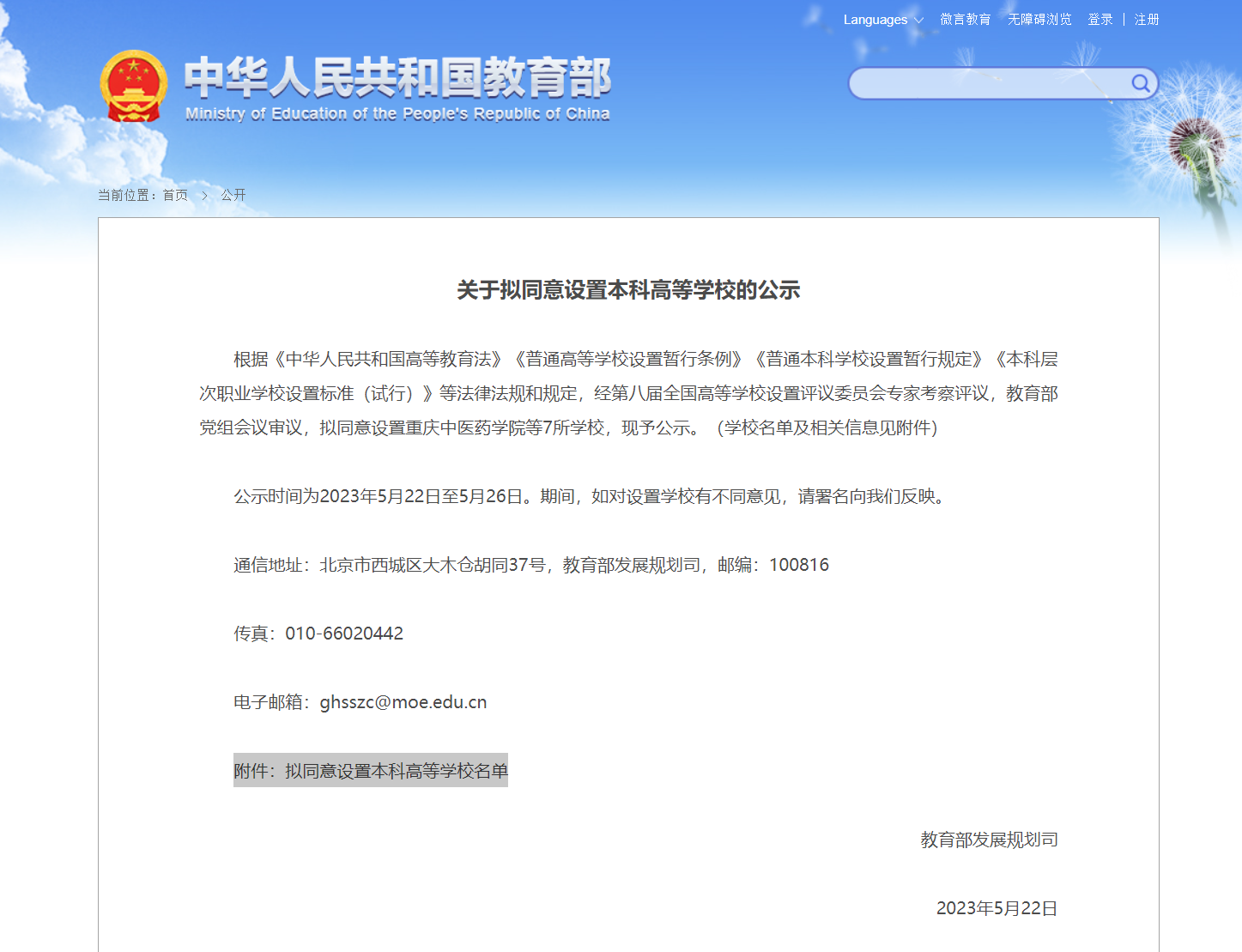 (原标题:《关于拟同意设置本科高等学校的公示》)