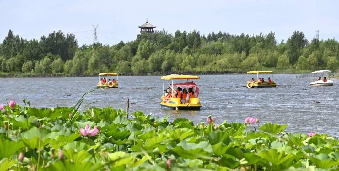游客可从老坎子码头乘坐湿地观光游船,环宫舍泡游览。