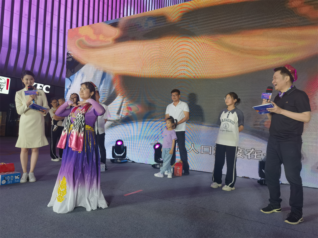 欢快的麦西来甫带有强烈的感染力,瞬间带动全场观众的热情,上台与主持人对舞互动。