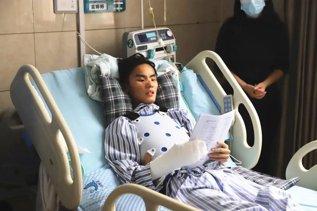 躺在病床上的,是郑州工业应用技术学院机电工程学院车辆工程专业学生林明欣。4月16日,他遭遇意外车祸,导致脑部受损、全身多处骨折,需在医院进行康复治疗,不能按时返校参加毕业答辩。