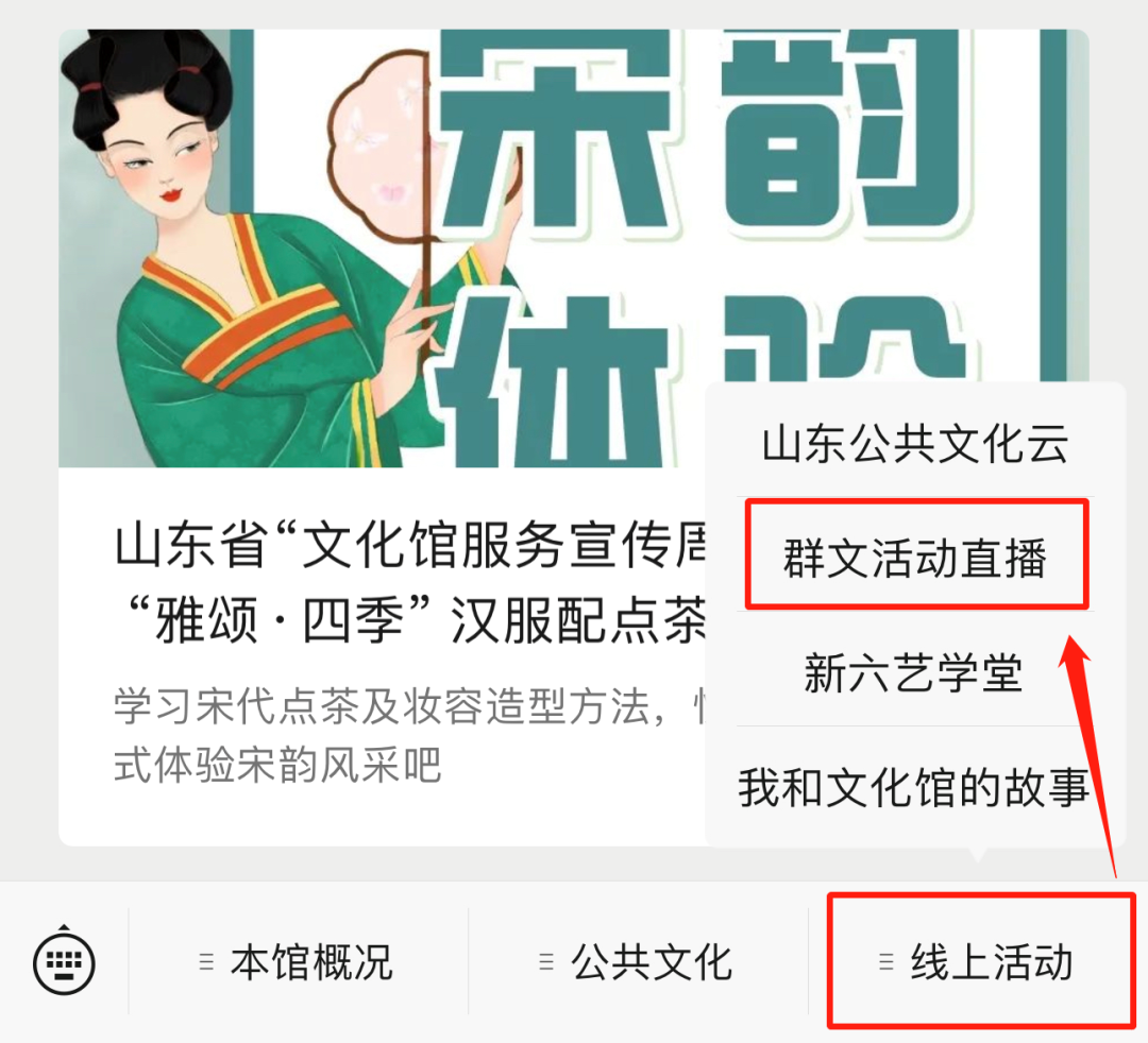 观演方式:因天气原因,本场演出通过线上直播。届时,观众可通过关注微信公众号“山东省文化馆山东省非遗保护中心”在线观看精彩演出。具体方式如下: