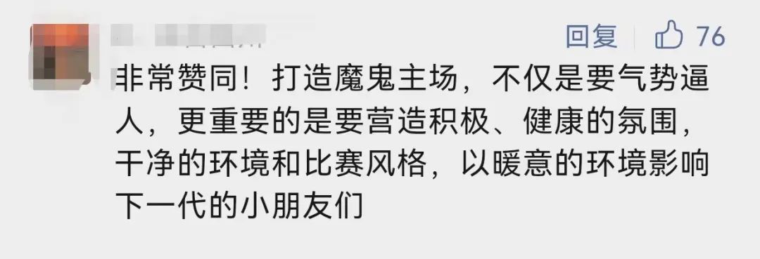 四川省球迷协会会长张利梅透露,本月,成都蓉城俱乐部面向球迷组织召开了一次沟通会,希望大家带头做好文明观赛的表率,共同维护来之不易的繁荣球市。“当时俱乐部强调了‘文明观赛’‘文明用语’‘文明助威’这三个文明,我们认为是非常有必要的,所以在又一个主场到来前在各个球迷群中发布了倡议书。”省球迷协会的倡议书发布后