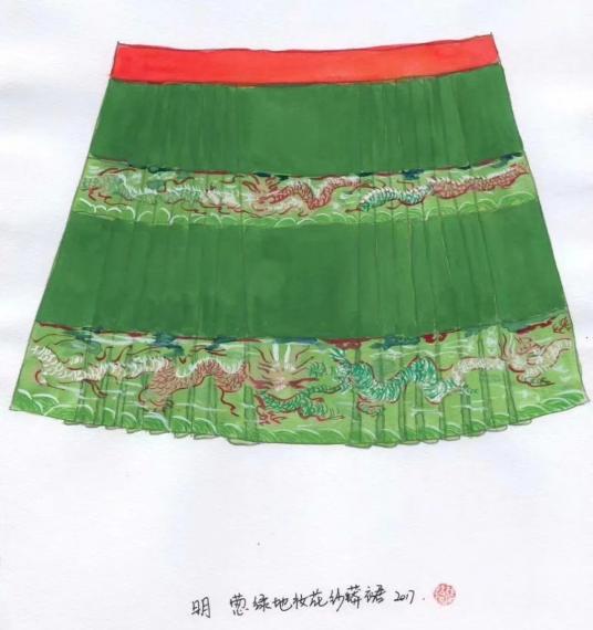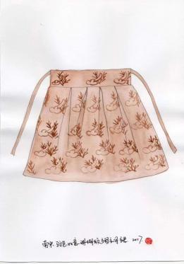 说起汉服的裙子,以宋代的款式最为丰富。张怡说:“在我的印象中,宋代的服饰是最生活日常化的古代传统服饰。这种审美意识就如青花瓷,在实用性的同时兼具审美。宋代的百褶裙、褶裥裙,甚至之后流行于明朝的马面裙其实早在宋时就已经出现。宋代的服饰风格较唐朝时候更加合身,长长的褙子盖住裙摆衬托出修长清瘦的整体形象,凸显了宋时文人高雅的审美意趣。”