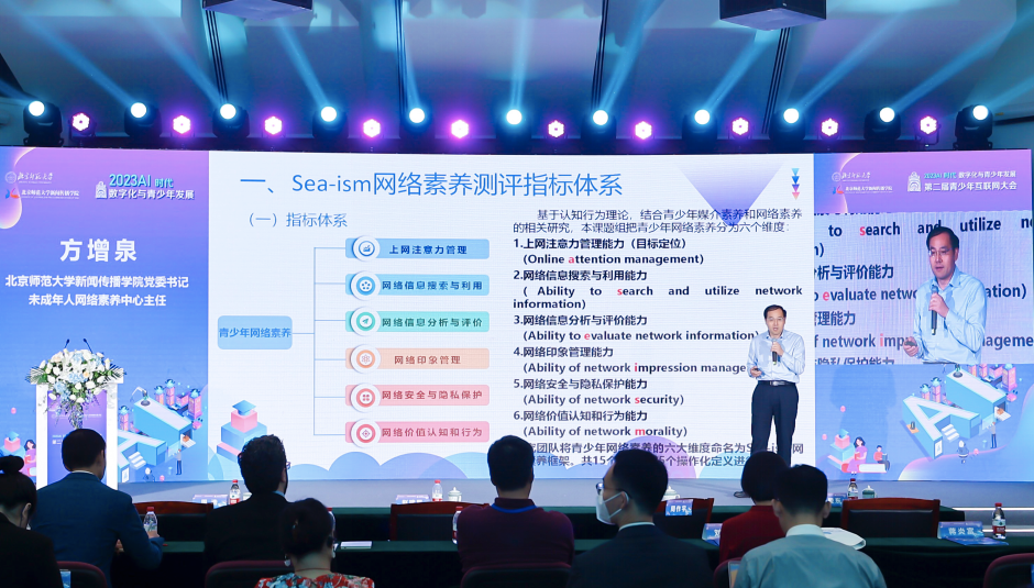 5月27日-29日,以“AI时代 数字化与青少年发展”为主题的第二届青少年互联网大会在北京师范大学召开。活动中,北师大新闻传播学院党委书记、未成年人网络素养研究中心主任方增泉发布了《新时代数字青年网络素养调查报告(2023)》。