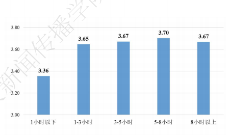 平均每日上网时长不同的大学生,网络素养得分不同。报告截图