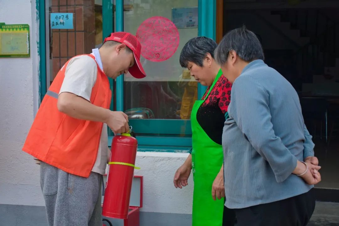 宅基消防培训走村入户、深入宅基开展消防安全宣传与灭火器使用培训,志愿者向村内消防器材安放点的住户及周边村民介绍、演示了灭火器的正确使用方法,提升村民消防应对能力,将消防安全带入群众家门,让村民也能自如正确使用灭火器。