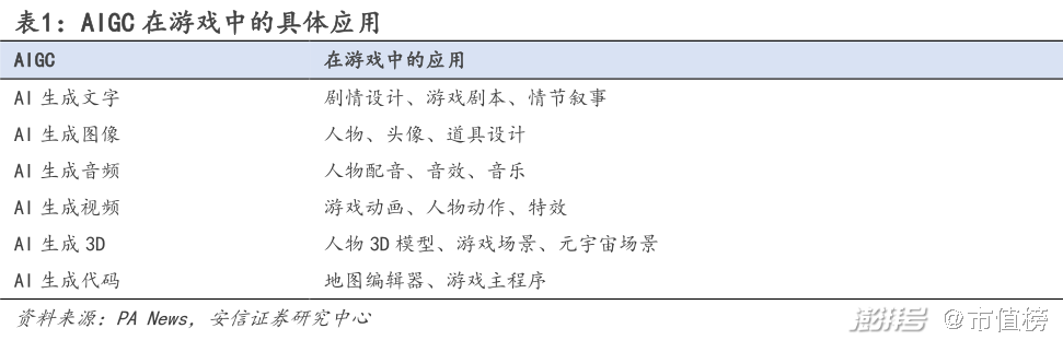 (来源:安信证券)AIGC生产模式下,也能实现游戏内容的千人千面,体现出玩家的自我个性,就像《逆水寒》手游里,NPC的性格、剧情可以自己设定。