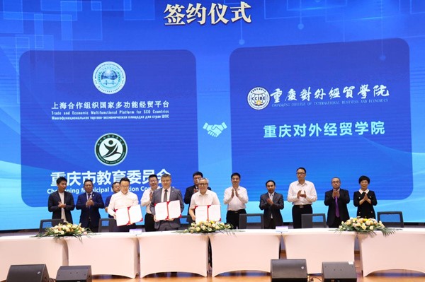 会议期间,上海合作组织国家多功能经贸平台、重庆市教委和重庆对外经贸学院举行了三方签约仪式。据了解,重庆对外经贸学院的前身是重庆师范大学涉外商贸学院。建校20多年来,对外经贸一直是学校的办学底色。近年来,学校坚持“内涵发展、产教融合、服务地方、形成特色”的发展思路,围绕数字经济和对外经贸打造办学特色,积极培育以大数据智能化为特色的新工科,大力打造以跨境商贸与跨文化传播为特色的“新文科”,着力培养高素质涉外人才和高技能数字人才。(晏红霞)