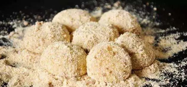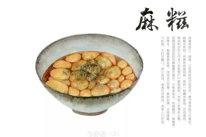 开头几下稍容易些,随着糯米渐次变成糊状,黏性不断增强,想要把石杵拔出来已很不容易,更不容易说举杵舂捣了。麻糍是纯糯米制作,比年糕更糍更黏,其吃力程度没亲手舂过的人是难以想象的。最后一道工序是做麻糍,根据喜好可以加工成不同的种类。做法最简便的是麻糍滑,把刚舂好的麻糍趁热分成小团,拌以红糖汁。撒上芝麻粉,吃起来香甜溜滑。
