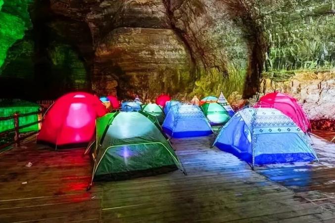 赏天然溶洞风光,醉暗河穿越漂流,体验星空露营,夜晚围着篝火,吃着沂蒙炒鸡。