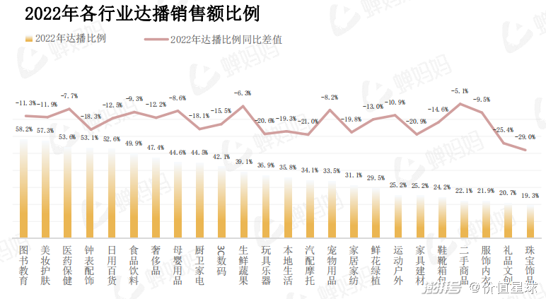 而且由于商家自播分流了一部分平台流量,2022年抖音各行业达人直播带货销售额均呈现出不同比例的下滑。因此,当平台、商家的策略调整后,头部主播面临的压力自然可想而知。