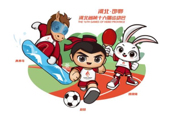 “赵娃”是古代燕赵健儿的经典形象,将传统文化要素与现代体育符号进行了有机艺术融合,体现了我市特有的深厚文化底蕴,传达出了当今青少年朝气蓬勃、活力向上的精神风采。“奔奔马”的原型则源于我市博物馆馆藏的国家一级文物——战国青铜马的形象。我市是“胡服骑射”典故和中华“马”姓氏的发源地,同时马还是速度和力量的象征,代表着矫健奔放、坚韧勇敢的品质,契合运动健儿的拼搏向上的精神。“跳跳兔”的灵感则来源于2023年农历生肖兔,同时,兔在中华传统文化中是敏捷、机智、善良的化身,为“飞驰少年组合”带来更充沛的活力。飞驰少年,向未来领跑。本次省运会的主题口号及会歌均为“向未来领跑”。该口号体现出了运动健儿昂扬的姿态和饱满的精神,展现了他们积极向上、不断超越的体育精神及追求美好、向往幸福的乐观态度,表达了河北人民对现代化河北美丽图景的憧憬与向往,传递出风雨同舟、踔厉奋发、共筑美好未来的信心和希望。