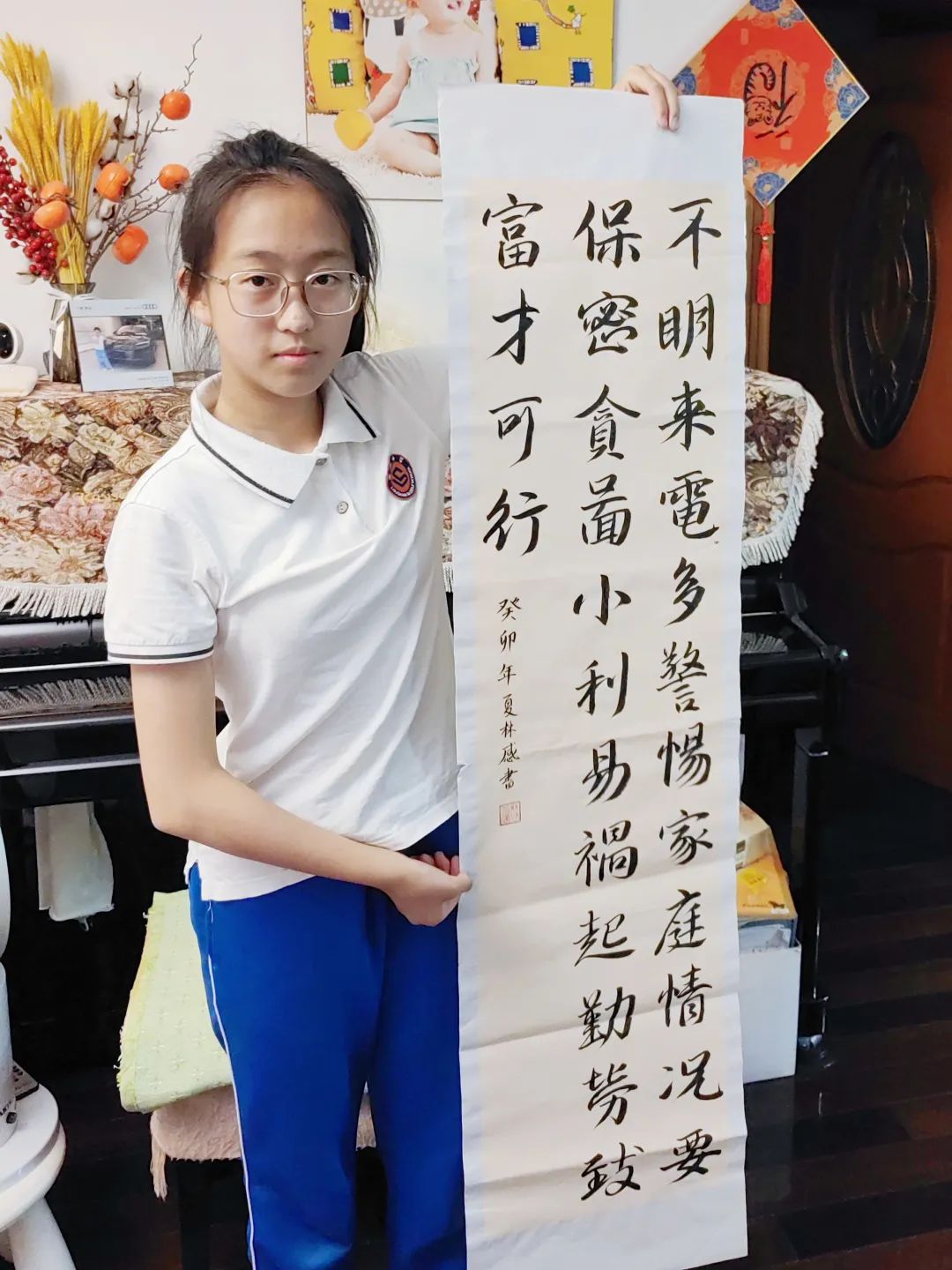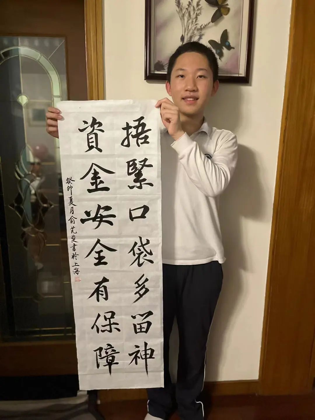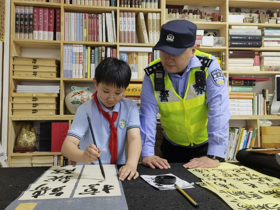 来自浦江镇的夏城皓、虹桥镇的侯浩轩、吴泾镇的俞芃斐、江川街道的林感,四位未来书法家,带来了各自的反诈书法作品。