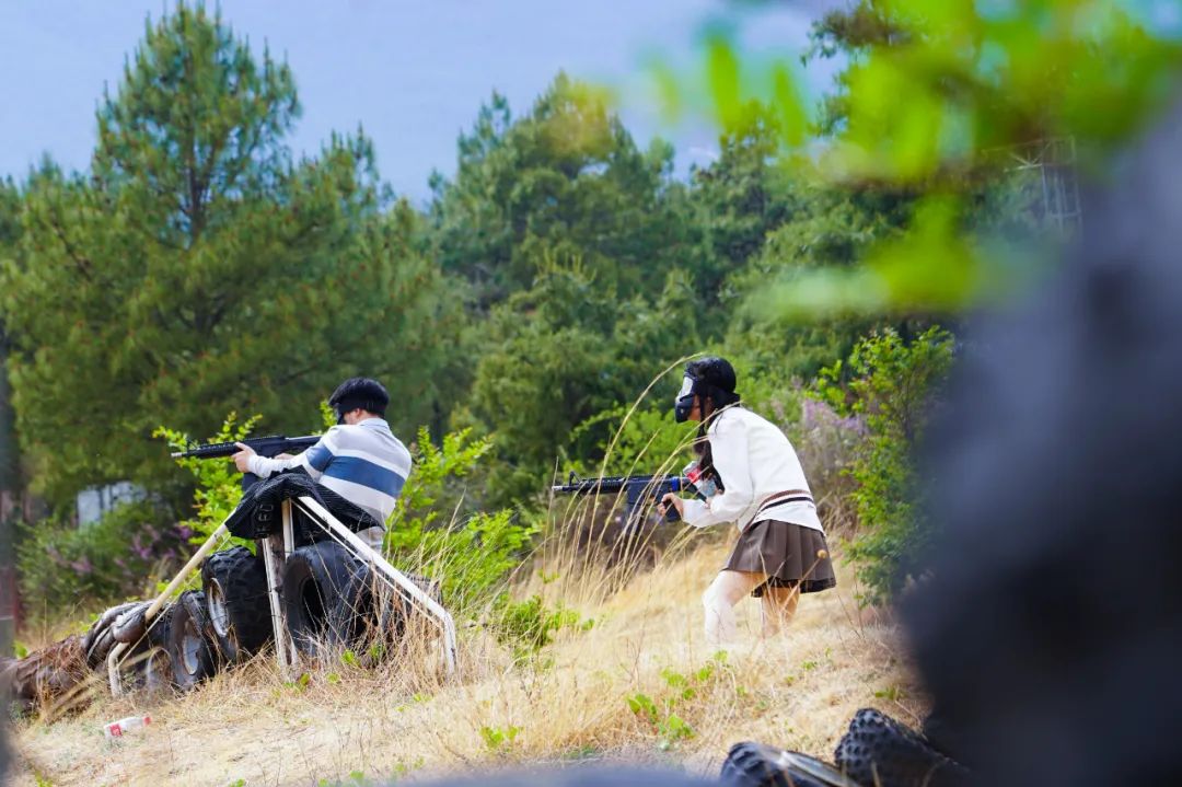 真人CS集运动、游戏、军事、拓展于一体,战壕、挡板、堡垒、沙袋、汽车残骸……等实战场景包罗万象,激光、水弹、彩弹……等射击装备一应俱全。大小朋友们在沉浸式体验真人版“吃鸡”带来的快感的同时,也有效拉进亲子关系。